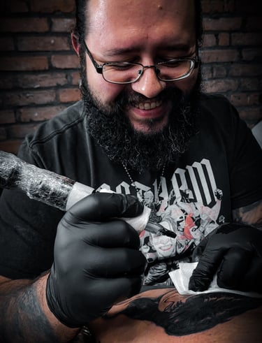 Hewerton, mais conhecido como Kavera, iniciou sua jornada na tatuagem em 2016, após dois anos de prática e estudos com seu primeiro kit.