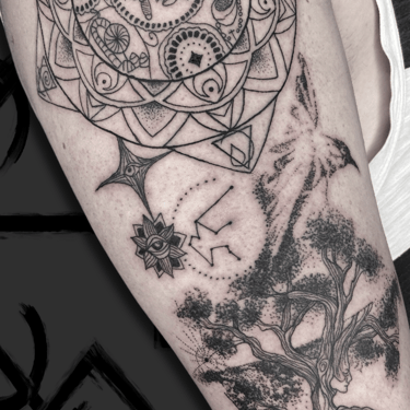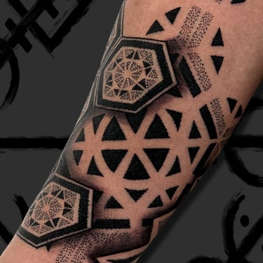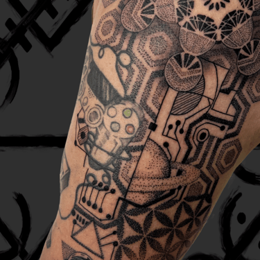 especialista em tatuagens no estilo pontilhismo